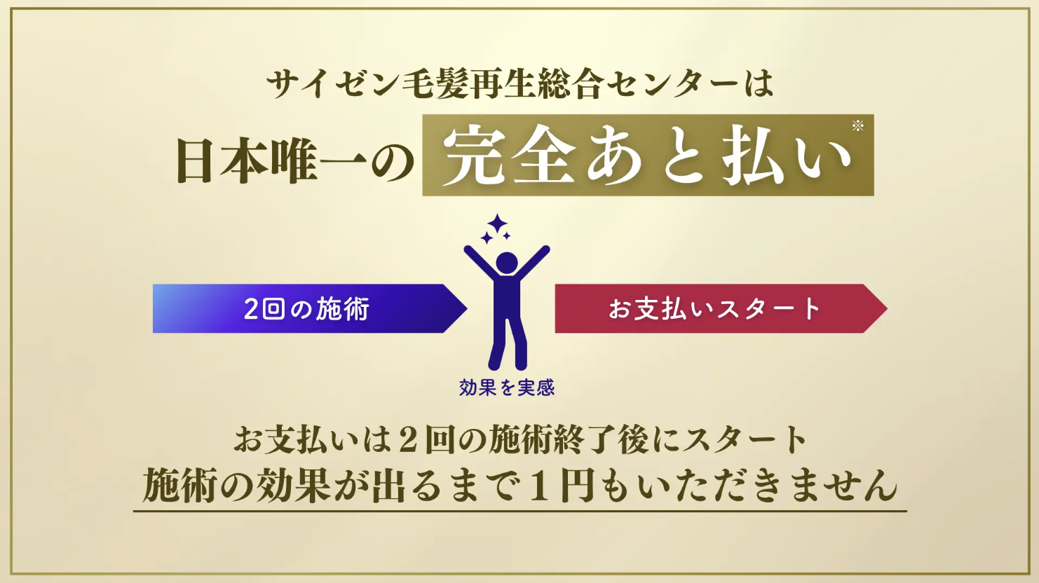 サイゼン毛髪再生総合センター(運営:株式会社ミライエ)は効果を実感してからお支払いいただく